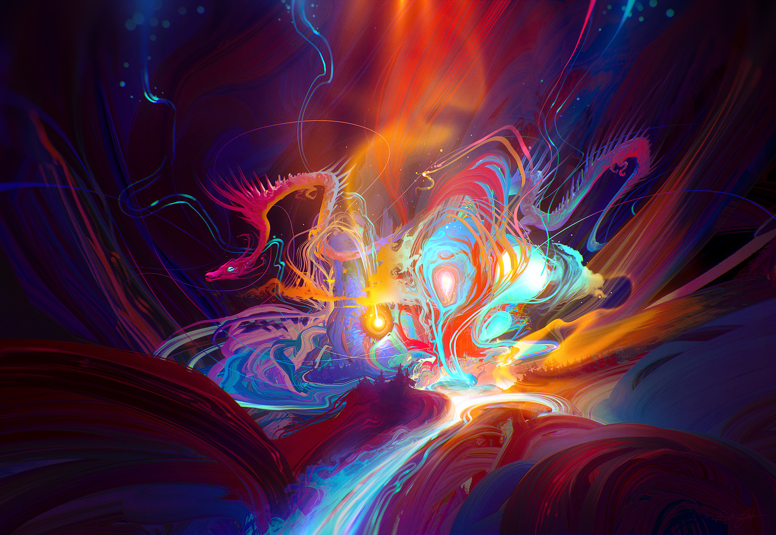 A late night color painting. I love this kind of exercise where I can let the brush express itself freely and where I can mix colors in an abstract dance around evolving concepts.