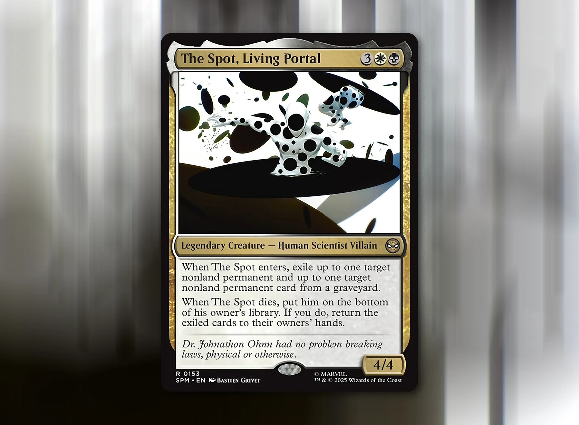 A Supervillain like no others and a card with a good challenge: as it was specifically asked to use only plain black and white, I had to find a subtle way to show a sense of depth. Art Director: Michael Thomas